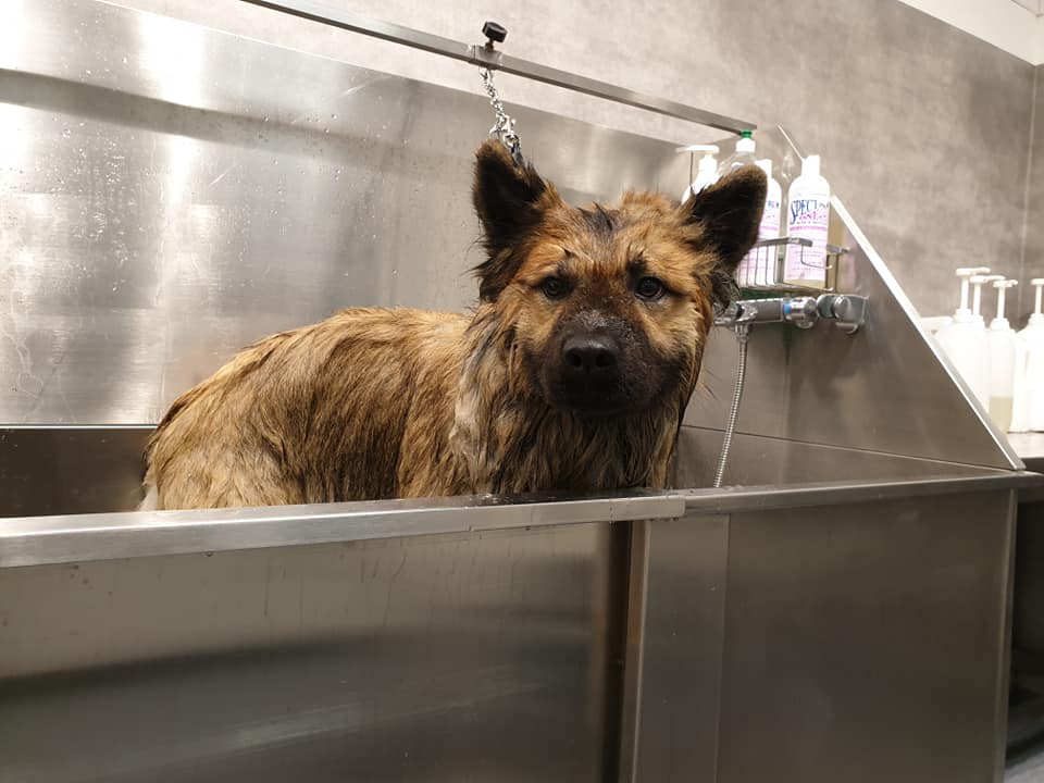 Jag blöter igenom pälsen ordentligt, tvättar två gånger med ett djuprengörande schampo.